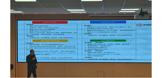 曼德-光电长春分部分公司代表李悦介绍了企业发展概况、长春分部的业务布局、核心产品研发及未来战略规划。他表示,曼德-光电高度认可我校的人才培养质量,特别提及我校毕业生在企业岗位上展现出的严谨态度与高效执行力,希望通过此次招聘吸纳更多优秀学子加入,与企业共筑发展蓝图。人力资源部门代表苗天生详细解读了此次招聘的岗位需求、薪资福利体系、职业晋升通道及招聘全流程安排,邓考、李欣则针对同学们关心的实习考核、技能培训、落户政策等问题进行了逐一回应,现场互动氛围热烈。