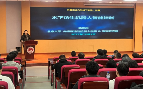 座谈会后,喻俊志教授在综合楼报告厅作了题为“水下仿生机器人智能控制”的学术报告。小电影