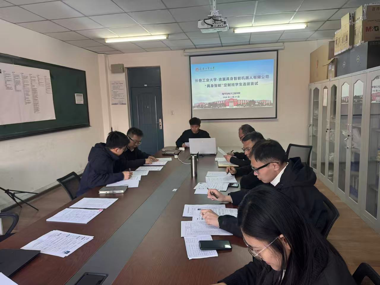 与吉翼具身智能机器人有限公司联合开展的“具身智能”定制班学生选拔面试在主楼1505室顺利举行。此次选拔旨在深化产教融合,对接吉林区域发展需求,培养具身智能领域的高素质创新人才。